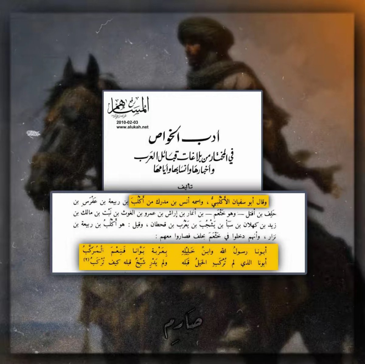 نبدأ بصحابته رضي الله عنهم ، وعلى رأس القائمة أبي هريرة الدوسي ثم الزهراني وهو ينسب قحطان لإسماعيل ﷺ. x.com