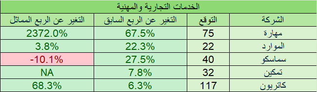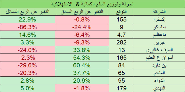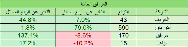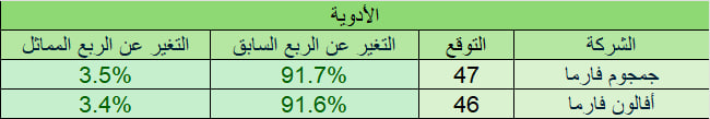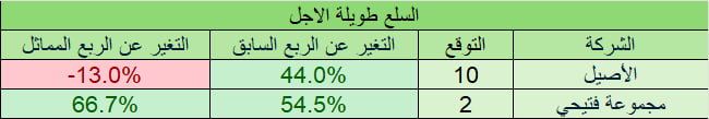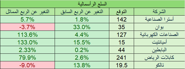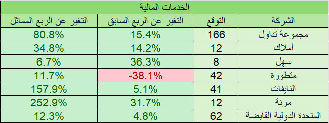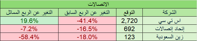 التوقعات لا تشمل أي ارباح او خسائر غير متكررة