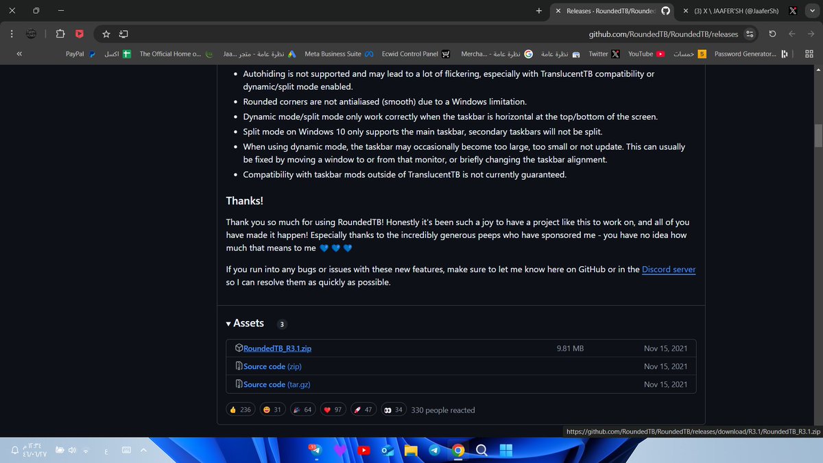 بنفتح المجلد وبنشغل الأداة من خلال RoundedTB.exe وبنعدل إعداداتها زي ماهو موضح بالصورة أمامكم وبنضغط على Apply