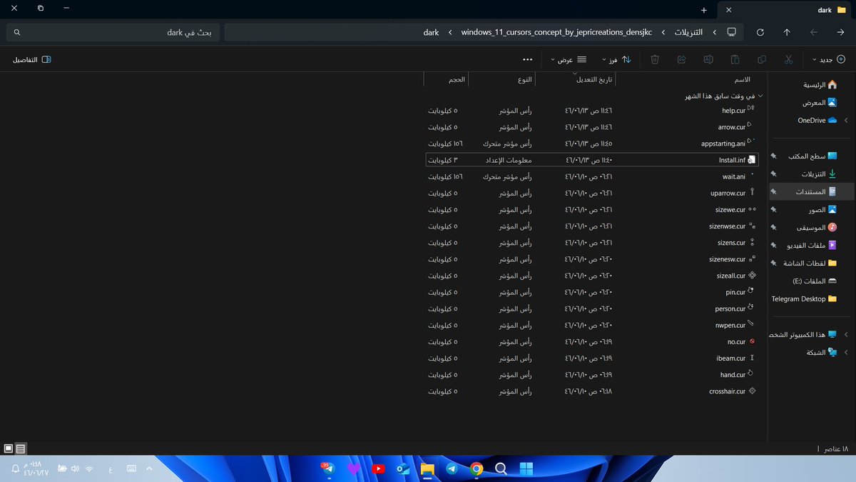 بنضغط بزر الماوس الأيمين على ملف Install.inf وبنختار تثبيت او Install