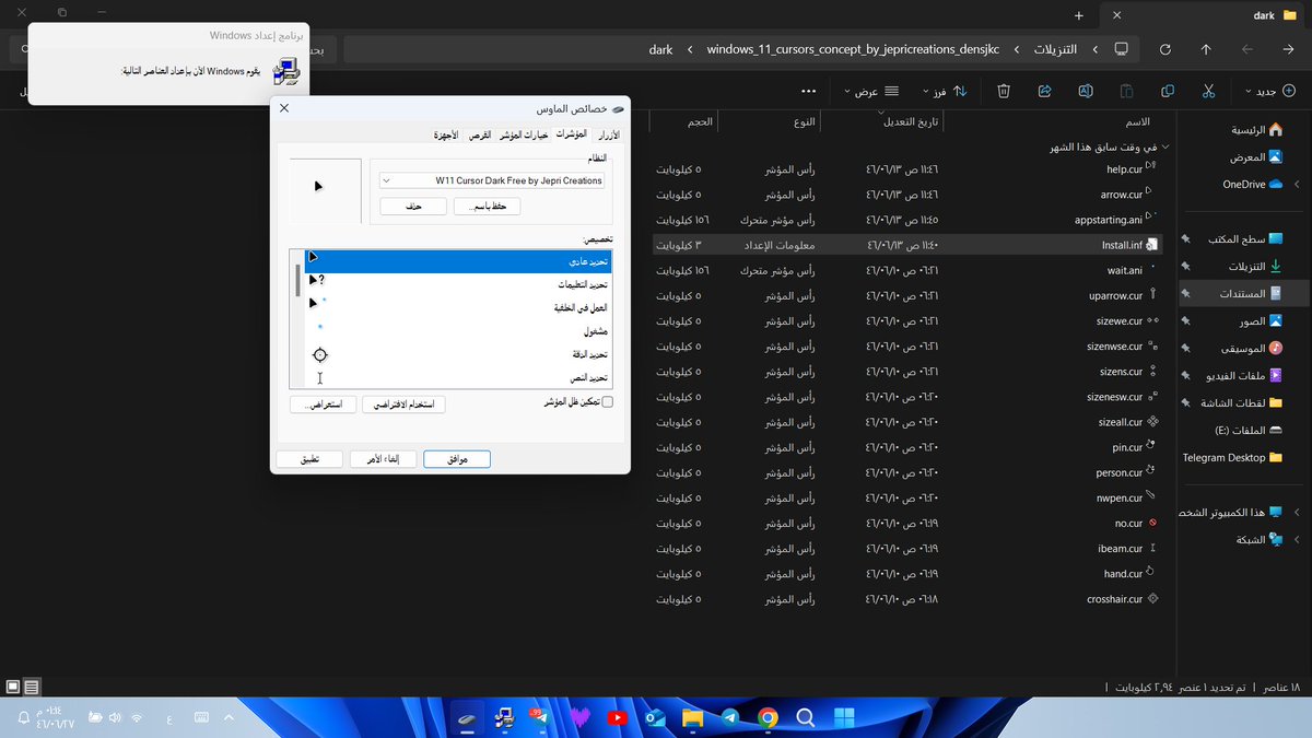 بتفتح معنا نافذة تغيير شكل المؤشر بنختار النسخة اللي حملناها وبنضغط على تطبيق وموافق x.com
