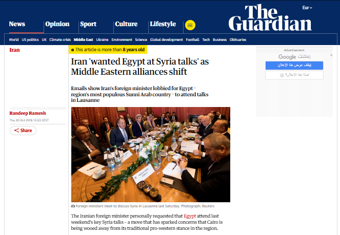 من جانبها اطلعت صحيفة الغارديان على رسائل إلكترونية بين وزير الخارجية الأمريكي ونظيره الإيراني تشير إلى أن الوزير الإيراني محمد جواد ظريف طلب من كيري أن يحضر فريق القاهرة محادثات لوزان. وعندما اقترح وزير الخارجية الأميركي إجراء محادثات سداسية "لرؤية ما إذا كان من الممكن أن إيجاد حل للصراع في سوريا" ، رد ظريف: "لماذا لا تشارك مصر أيضاً؟". 👇
