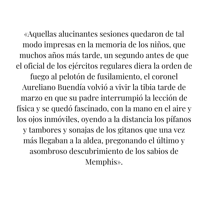 La fórmula de Melquíades es la forma real del tiempo humano. Ahora, en este instante, se condensa toda la historia que nos ha traído aquí y, a su vez, se abre todo un futuro de posibilidades que nace de este mismo instante.