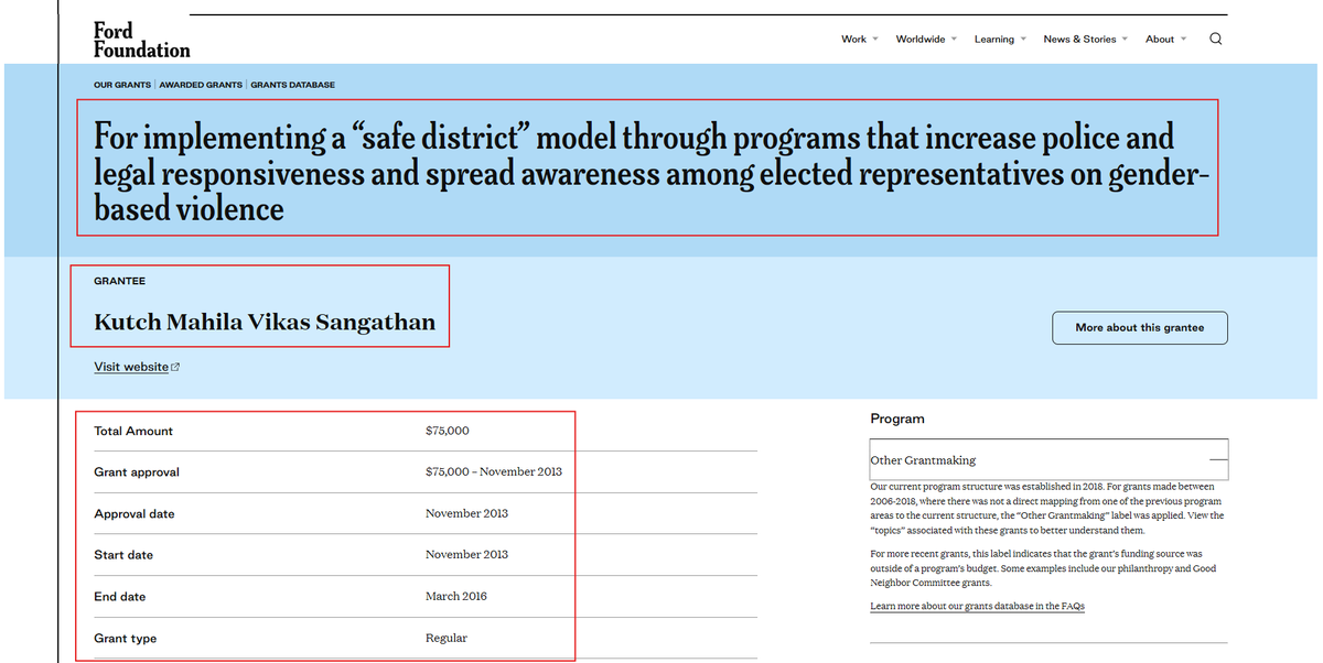 Footnote - Here are the details of Ford Foundation funding to Kutch Mahila Vikas Sangathan (KMVS).