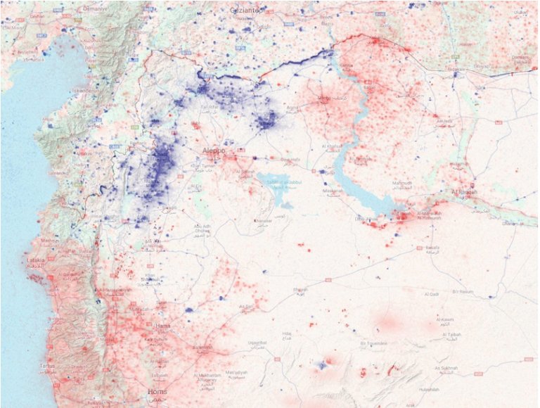 افزایش حدود ده برابری میزان مناطق روشن در نقاط تحت کنترل مخالفان نشان میدهد که نهادهای مدنی مخالفین توانستهاند در یگ جامعه نمونه سطوح خوبی از کارآمدی را نشان داده و با منابع موجود رفاه قابل قبولی در آن مناطق ایجاد کنند در حالیکه بطور پیوسته زیر فشار بمباران قرار داشتند.