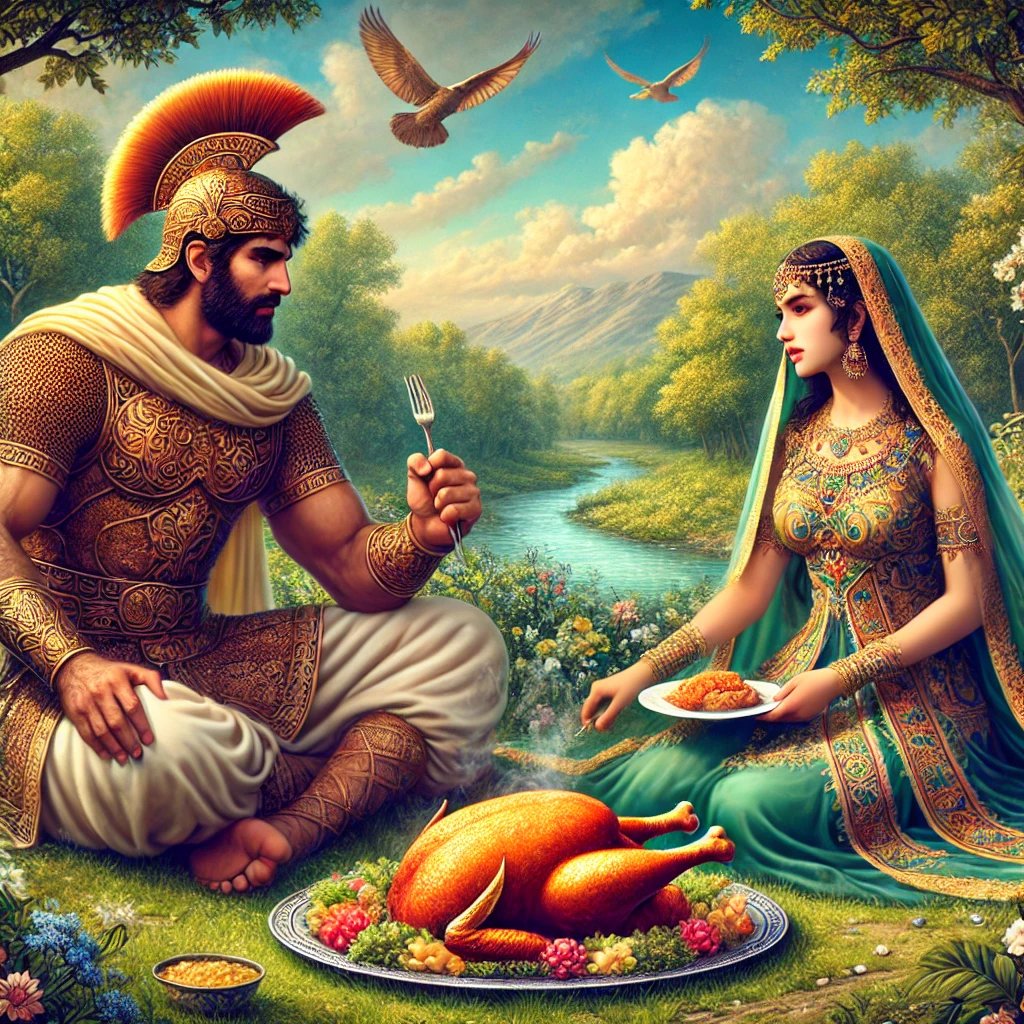 اینبار منیژه با مرغ بریون میره دم چاه میشینه و داستانو برای بیژن تعریف میکنه.