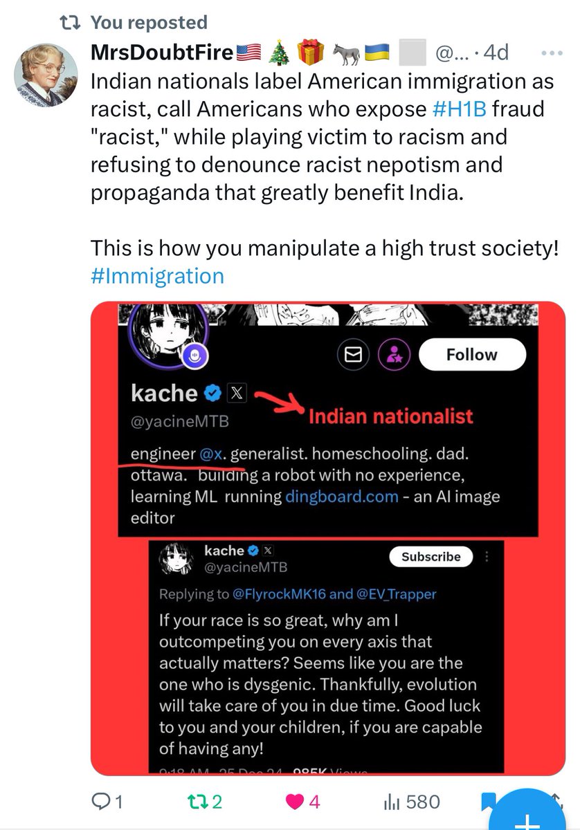 இது, அமெரிக்காவில் வாழும் இந்தியர்களை (பெரும்பாலும் பார்ப்பனர்கள் / பார்ப்பன அடிமைகளை) அச்சத்துக்கு உள்ளாக்கியுள்ளது.