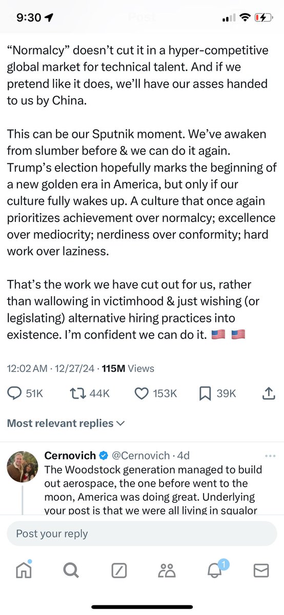 விவேக் இராமசாமி என்ற பாலக்காடு பார்ப்பன பின்புலம் கொண்ட அமெரிக்க அரசியல்வாதி, ஒரு பதிவு போட்டார்.