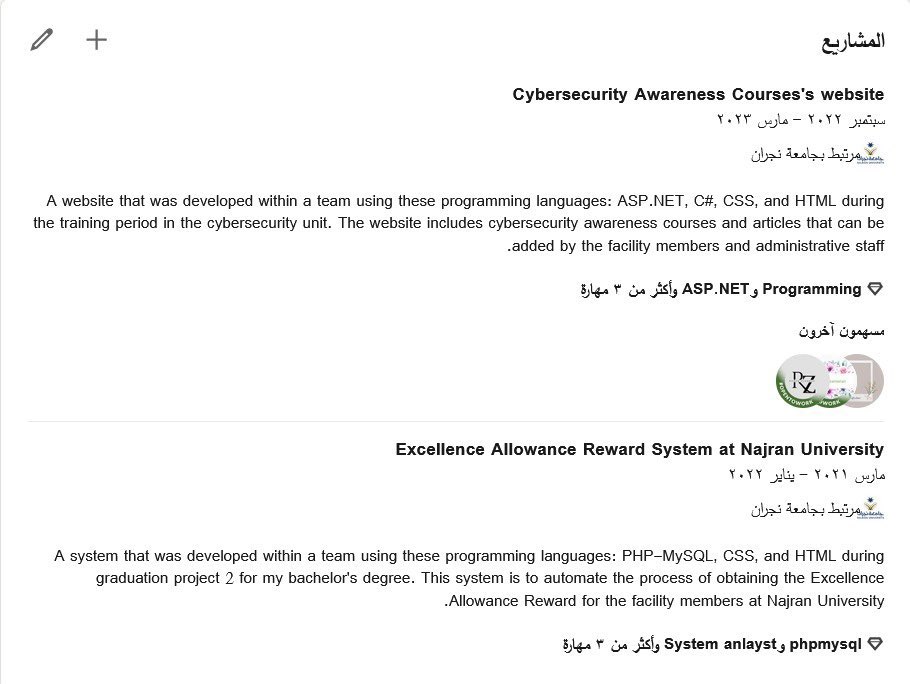 حذفت كل شيء انا كنت كاتبته بالعربي والخبرات والتدريب اللي عندي كتبت عنهم تفاصيل بالاشياء والمهام اللي سويتها 👇🏻
