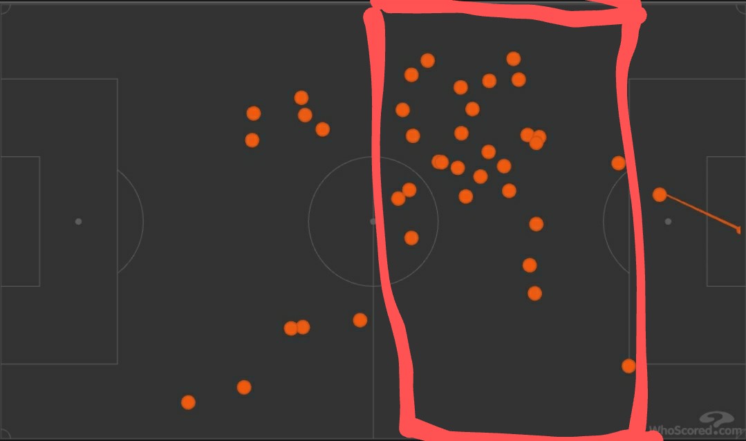 Y no sólo en cantidad, sino también en calidad. Porque, de las 40 intervenciones que registró en la primera parte, 29 fueron en la zona caliente del juego (ver imagen @WhoScored) x.com
