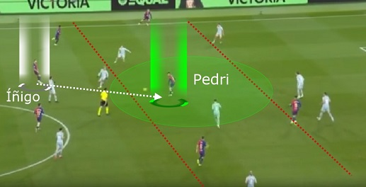 a/ El Barça dejó atrás la estructura del medio del campo en tres alturas para pasar a un medio del campo en triángulo con dos medias puntas puras a la misma altura (Pedri-Gavi). x.com