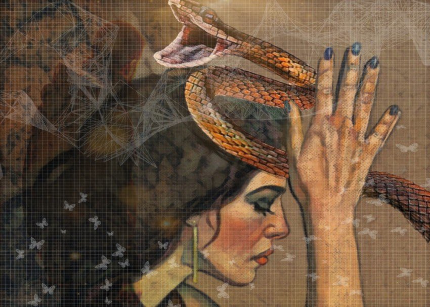 واعتذر لها لأنه لم يبقَ عنده شيء من اللحم غير هذه القطعة .سُرَّت المرأةُ العجوز بذلك وأكلت اللحم ورمت عظمة الساق ، وفي ساعات الليل جاءت حيّة تدبّ على رائحة اللحم والزَّفَر(1) ، وأخذت تُقَضْقِضُ(2) ما تبقى من الدهنيات وبقايا اللحم عن تلك العظمة ، فدخل شَنْكَل(3)
