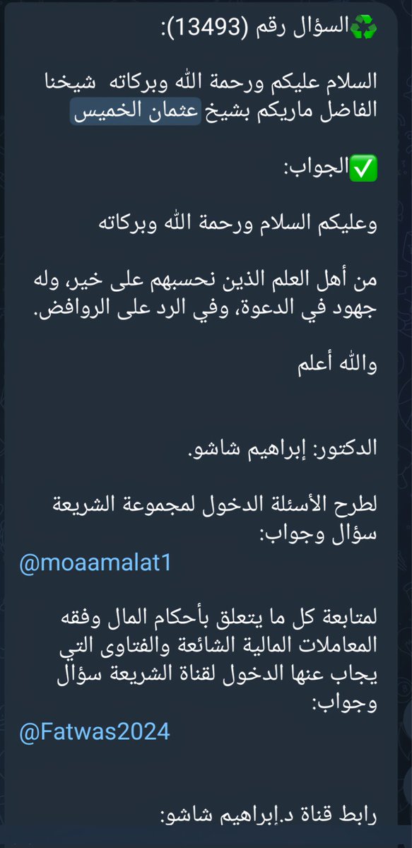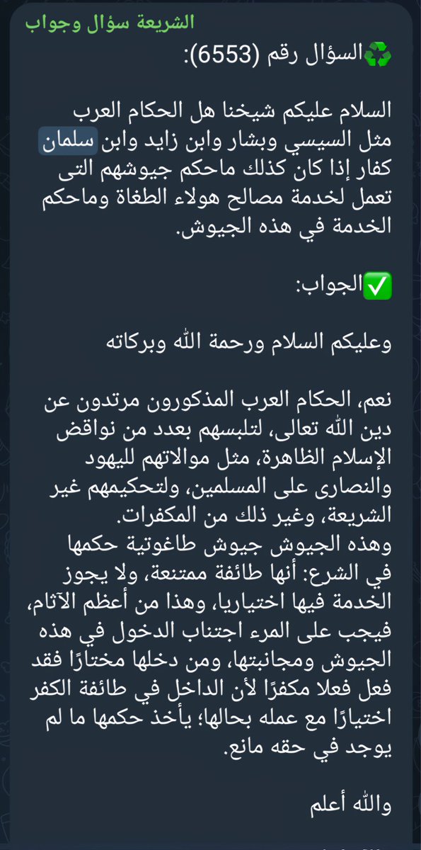 سأنشر بعض فتاواه التي نشرت على التيلغرام في أسفل التغريدة حتى يتبين للناس منهجه وحتى لا يُغتر به