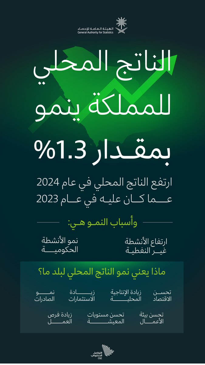 ارتفع الناتج المحليّ للمملكة في عام 2024 بمقدار 1.3٪ عمّا كان عليه في عام 2023.