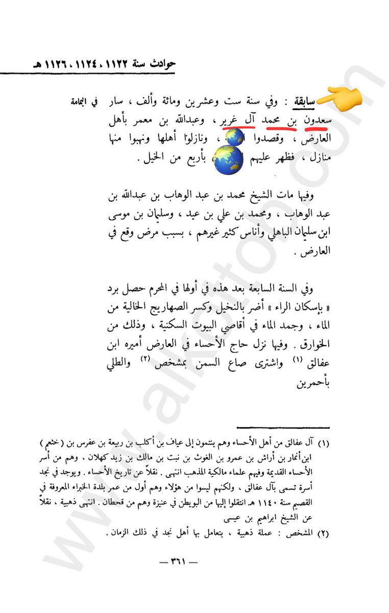 ٥- أحداث ووقائع وحملات على نجد في عهد الأمير سعدون بن محمد بن غرير آل حميد الحاكم الثالث في دولة بني خالد من سنة ١١٠٣هـ وحتى سنة ١١٣٥هـ👇