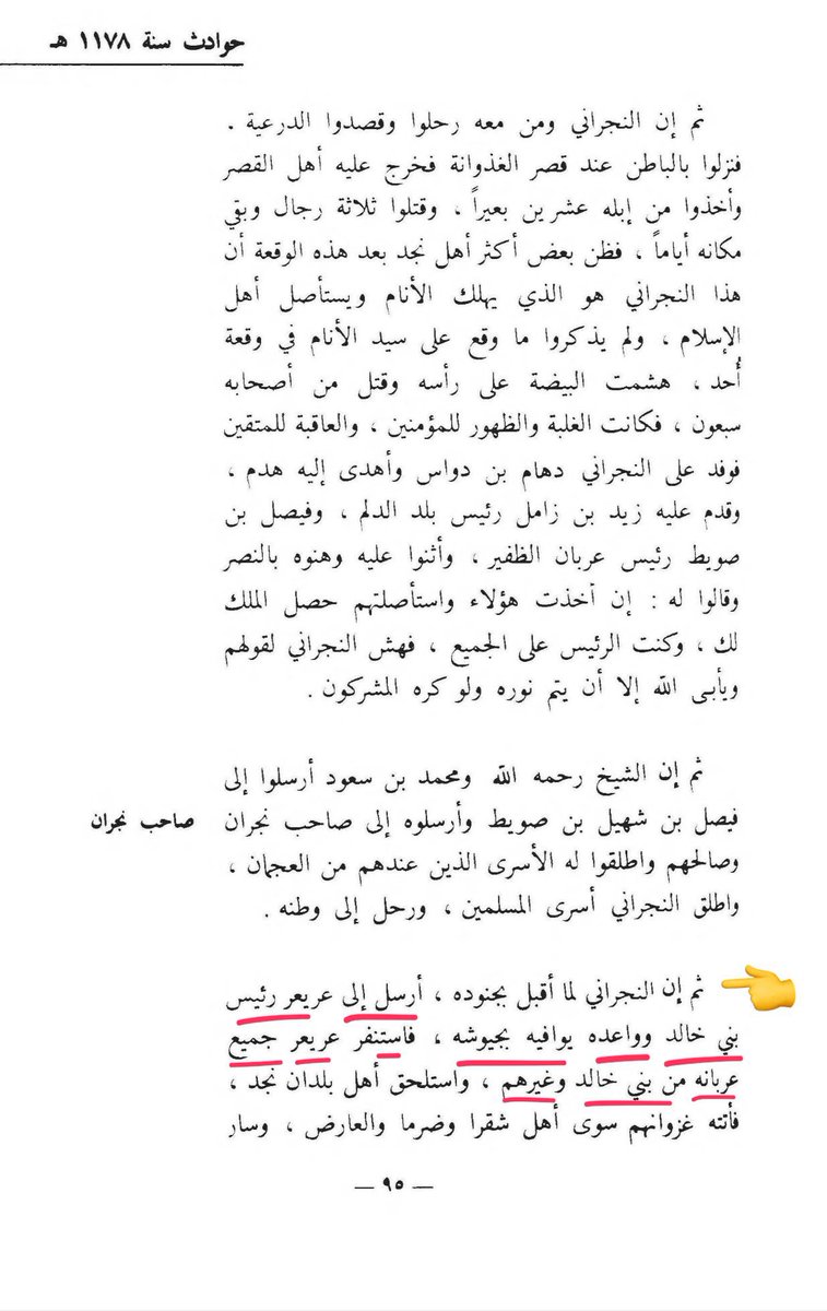 ١٣- لا يزال الحديث عن الحملات على نجد في عهد الأمير عريعر بن دجين آل حميد 👇