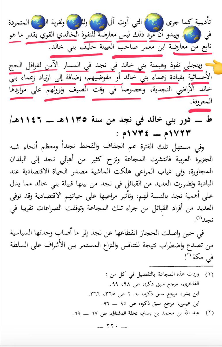 ١٦- وفي الختام هذا ملخص لما تقدم من الدور الذي كانت تقوم به دولة بني خالد من تأمين القوافل ونحوها مما يبرز دور بني خالد وهيمنتهم آنذاك 👇