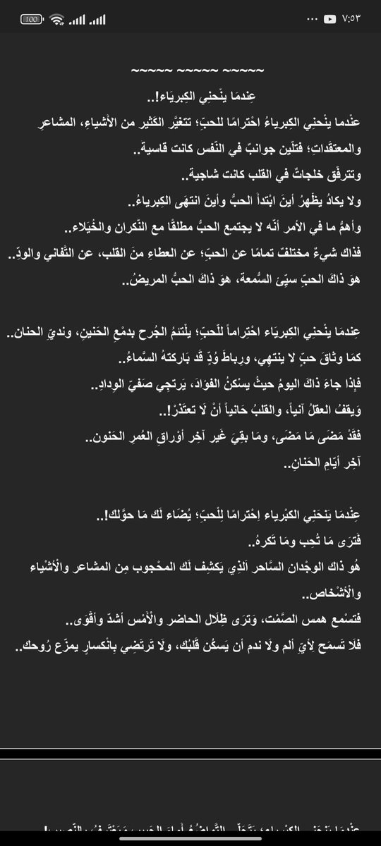 #عندما_ينحني_الكبرياء احتراماً للحب؛ يلتئم الجرح بدمع الحنين ونديّ الحنان..