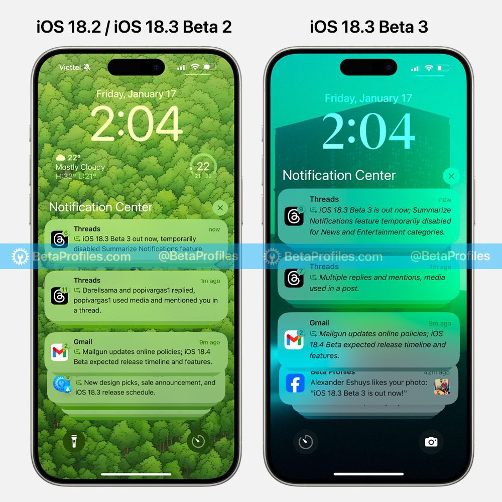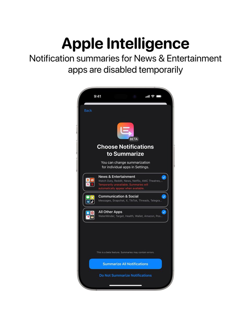 في iOS 18.3 Beta 3، سيتم تمييز الإشعارات التي يلخصها الذكاء الاصطناعي من آبل بخط مائل لتسهيل التعرف عليها وسط الإشعارات العادية. x.com