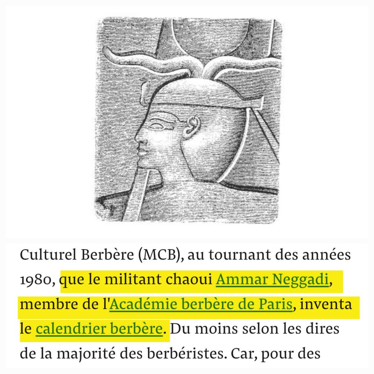 والسنة الأمازيغية التي رسمت أيضا بالجزائر لأول مرة، استنساخوها بكل تفاصلها الموضوعة، بما فيها من خرافة شيشنق المصري وغزوه لمصر ! x.com