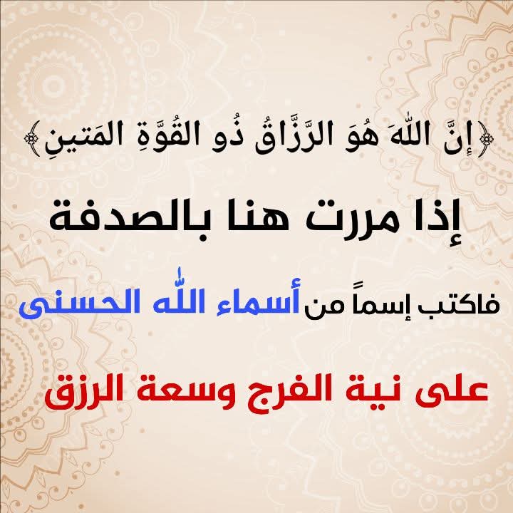 وكتابه إسماً من أسماء الله الحسني علي نيه الفرج وسعة الرزق