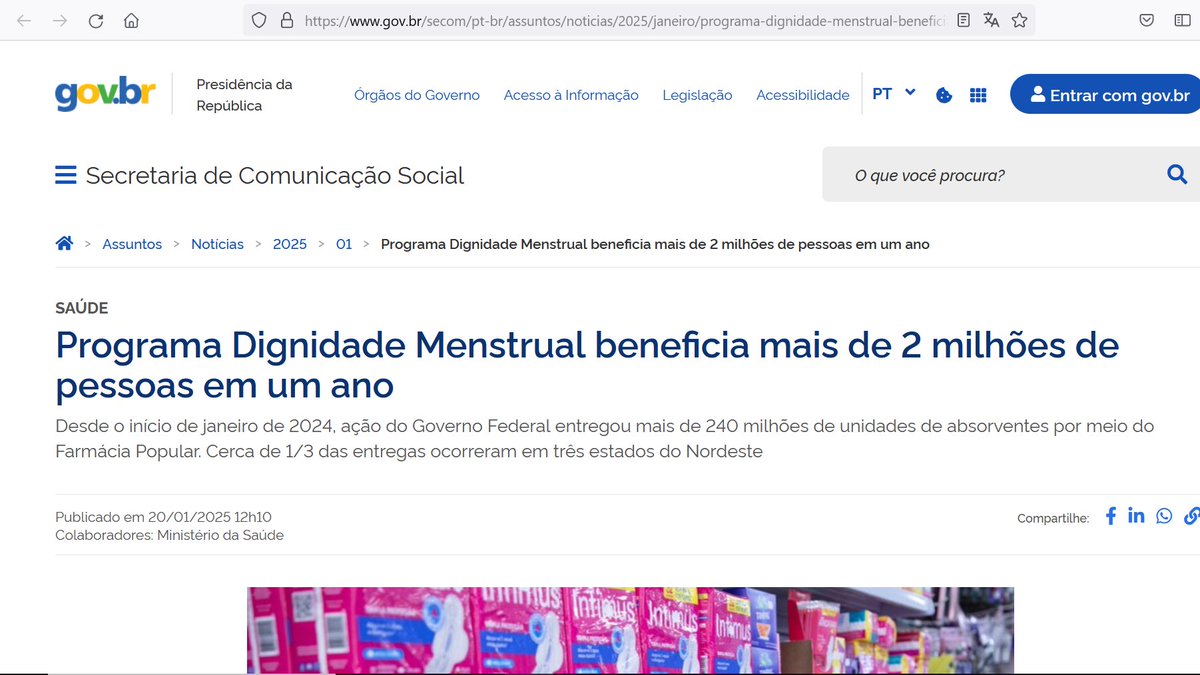 No Brasil, a USAID conseguiu algo ainda mais incrível: fazer o povo brasileiro financiar a farsa da pobreza menstrual. Aqui está o governo do Pelego-Chefe q não me deixa mentir. Repare na covardia do governo Mula: ele diz estar beneficiando "pessoas" que menstruam, não mulheres x.com