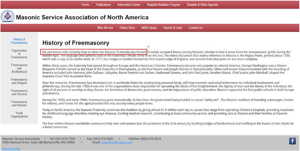 حيث تذكر المنظمة(لشمال امريكا) ما يلي عن تاريخ الماسونية: