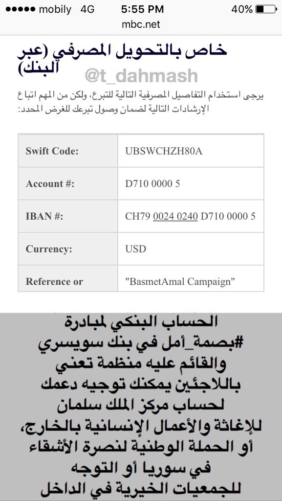 أنظمة الدولة تمنع التبرع للحسابات الدولية مثل ما تقوم به مبادرة #بصمة_أمل @MBCHope