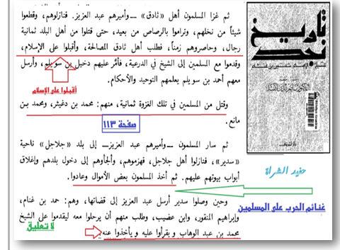 [2] ثم نتبع الأدلة بالبراهين الجلية من كتب [أهل السنة والمعاصرين لمجدد الوهابية وزمرته], على أننا نرگز على أشهر مصادر الوهابية التاريخية .