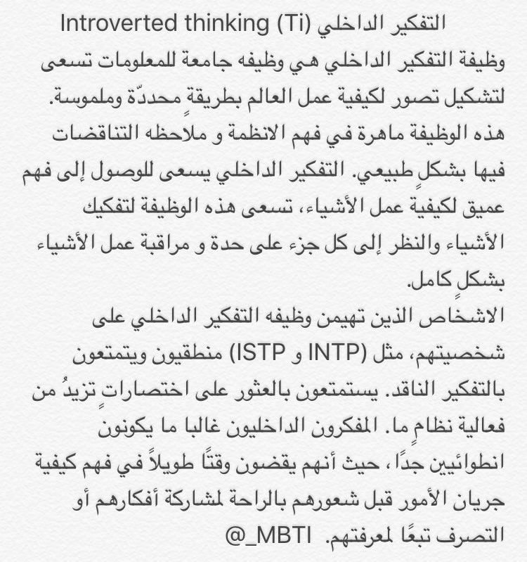 مثال: شخص نمطهINFP يمكن أن يطور(Te) مع الكبر في السن والتمكن من النفس أكثر، لكن هذا لا يعني أنه اصبحINTP! هم فقط أكثر نضجاً بالنمط الخاص بهم