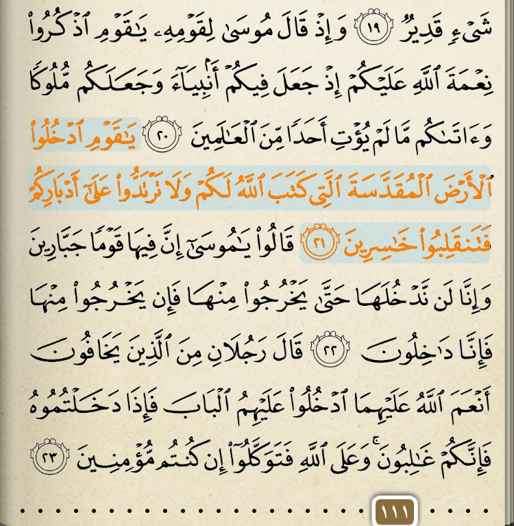 فقال رجلان ممن يخافون أمر الله: إن توكلتم على الله، واتبعتم أمره،نصركم الله على أعدائكم، وأيدكم وأظفركم بهم،ودخلتم البلد التي كتبها الله لكم