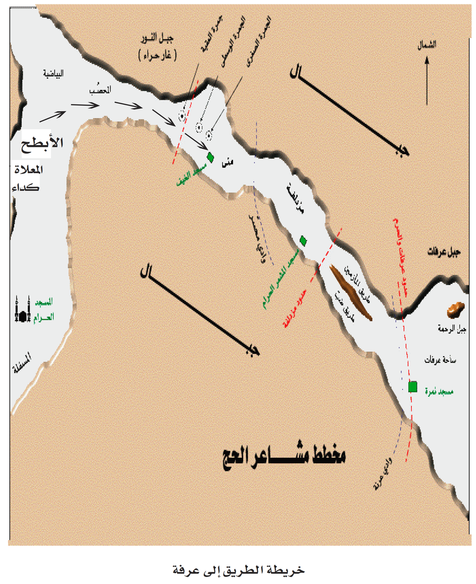 58-وكأنما أختارالنبي هذاالمكان لنزوله لأنه مكان فسيح يتسع لهذه الجموع معه ولقربه من مكة حاجة الحجاج لتجارتهم،وكونه على طريق القادمين إلى مكة