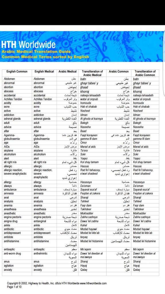 مصطلحات طبية شائعة الاستخدام ومهمة جداً في المجال الطبي مترجمة باللغة العربية