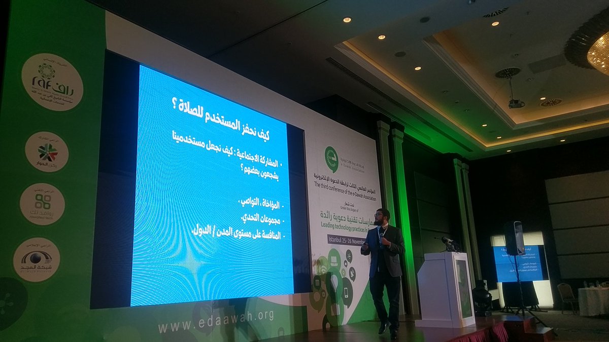 م. عبدالله يتحدث عن تطبيق عملي لمفهوم التلعيب في تطبيق صلاة، وكيف أن اختيار الهدف سيحدد نوع المحفزات المستخدمة