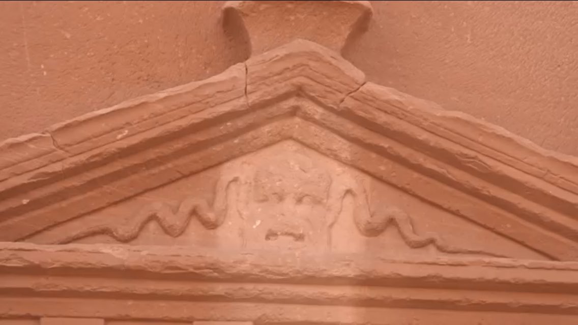 من أبرز العناصر المعمارية الدينية في واجهات مدافن الحجر الصخرية طائر "النسر" والذي يعد رمزاً للمعبود الرئيسي للأنباط "ذو الشرى"