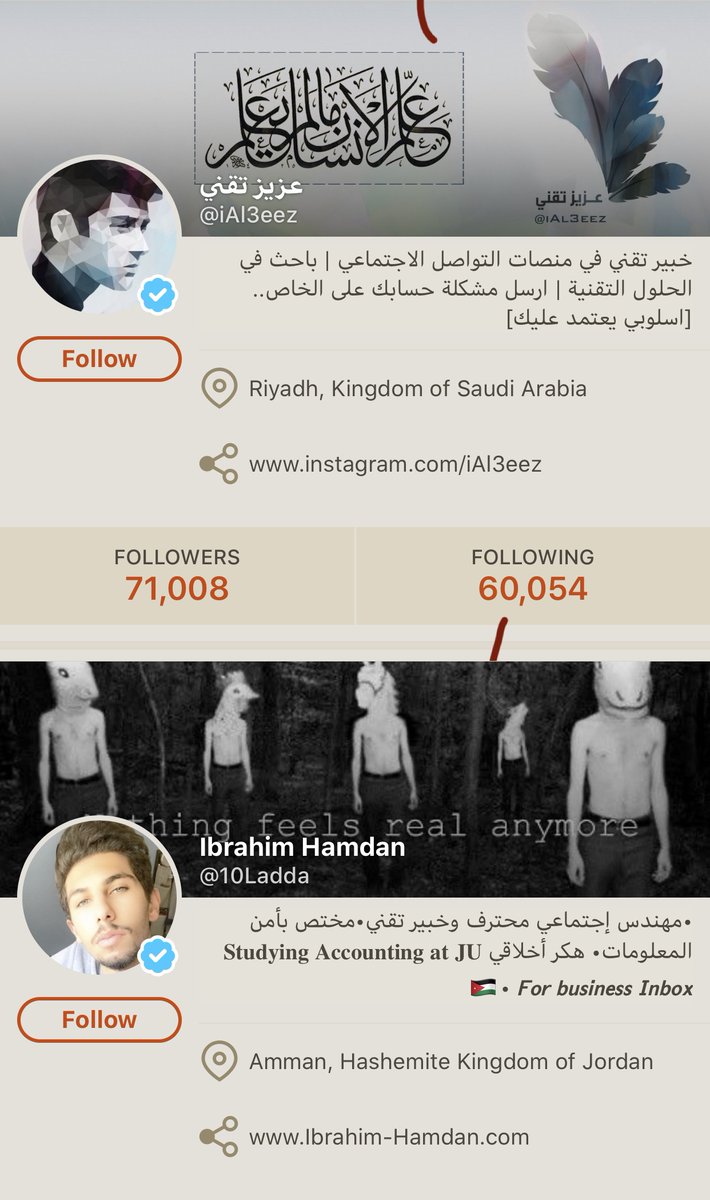 @verified @jack @bampen @GlennLove20 و هناك مشكلة اخرى من سرقة حساب موثق. الحسابات الموثقة الاخرى تتابعه و هم لا يعرفون انه حساب مسروق!!