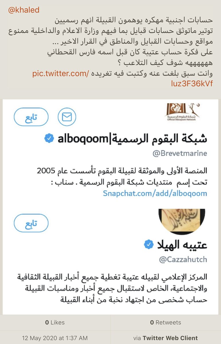Not a spammer but this @verified account acts like an official gov account. People think it’s an official account @jack @biz fix your @TwitterMENA already