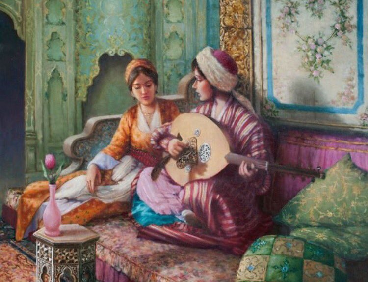 معجبا بالأبيات الأخيرة، وأنا أشاركه إعجابه، فمنذ قرأتها وأنا أتخيّلُ رجلًا بَطينًا، عريضَ العمامة، طريرَ الشارب، يحضرُ مجلسَ وغناءَ إسحاق =