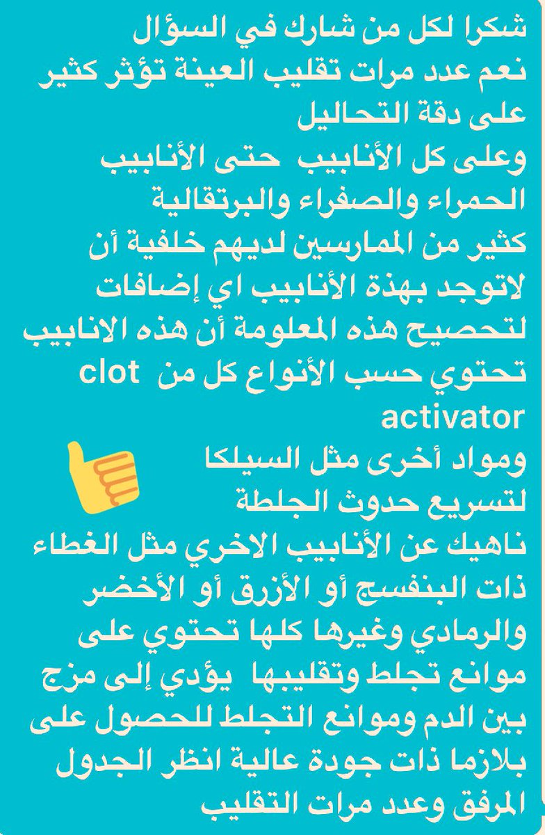 لابد من تقليبها جيدا للحصول على دم كامل بدون حصول جلطلت أو تكتلات الصفائح الدموية