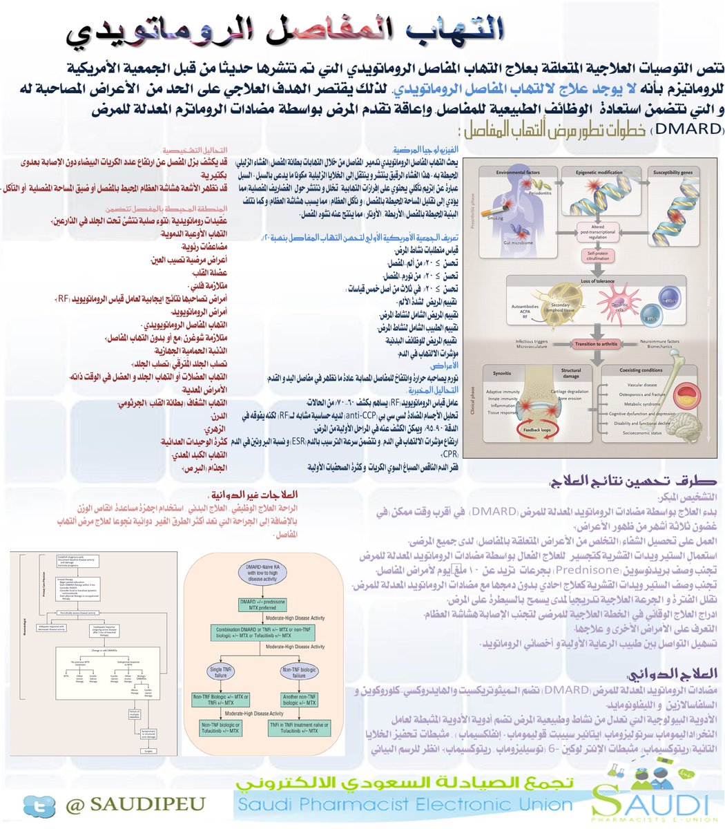 تنص التوصيات العلاجية المتعلقة بعلاج التهاب المفاصل الروماتويدي التي تم تنشرها حديثا من قبل الجمعية الأمريكية للروماتيزم بأنه :