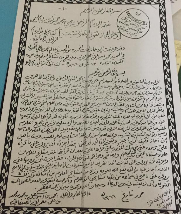 إذا تيسر لكم عرض هذا بعد الاستغناء عنه على سيدي الأخ العلامة محمد إسماعيل العمراني حفظه الله المبلغ شريف السلام