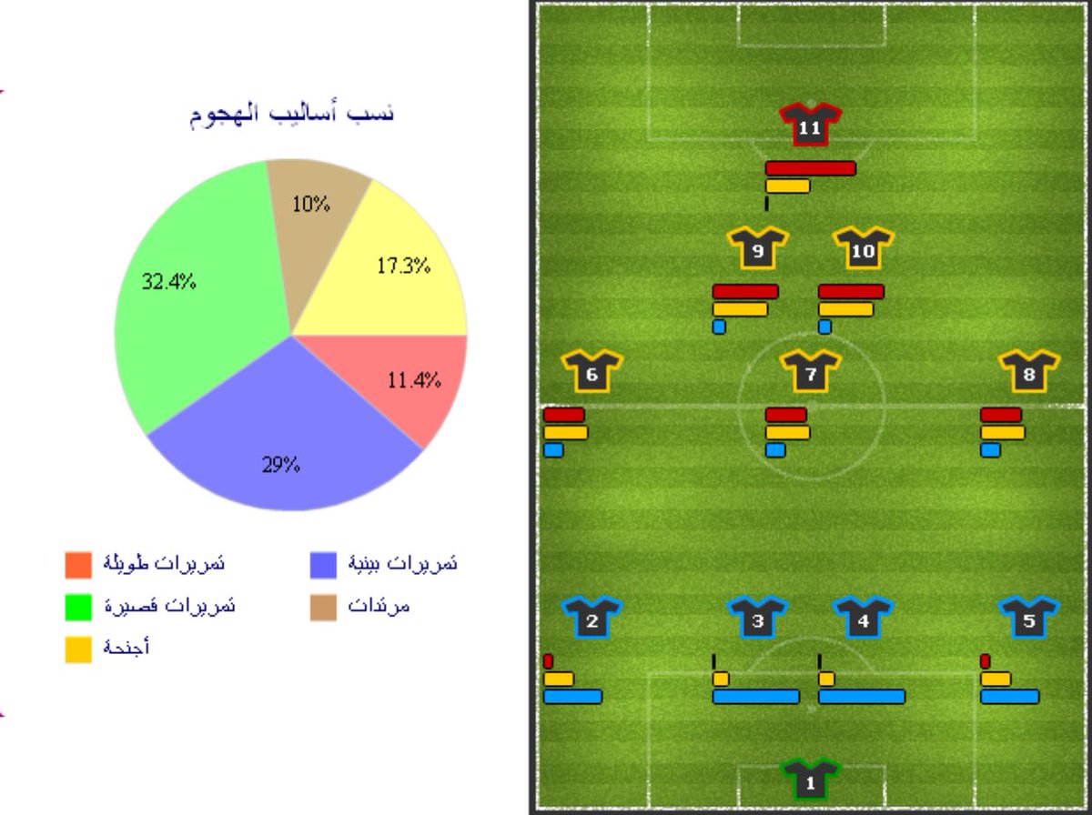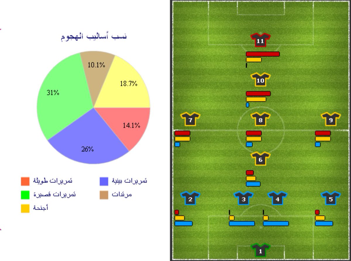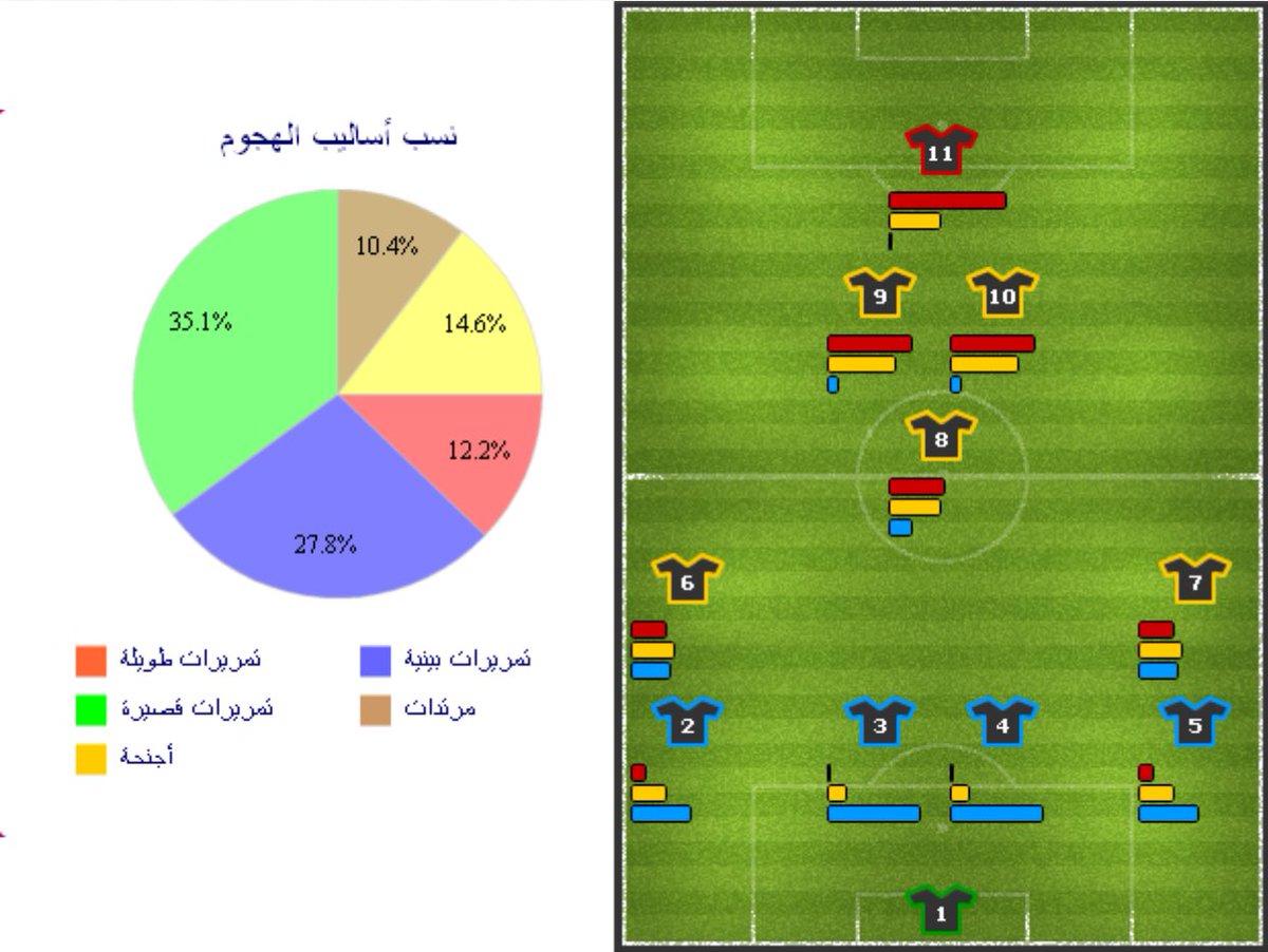 @Ray_M7mad @Meshari_ @memomadridesta @Hashim_AlKhodry @NMALSHATTI @Nsoo7y @musa042315 @SirM7md @Dr_T_AlJalahmah @Hassan_Aljassmi السيطرة على الكرة، أسلوب اللعب كما تلاحظون في المبيان أعلاه نسبة كبيرة من الأجنحة لتمركز ثلاث لاعبين في كل جهة يصنعون العرضيات بشكل متواصل