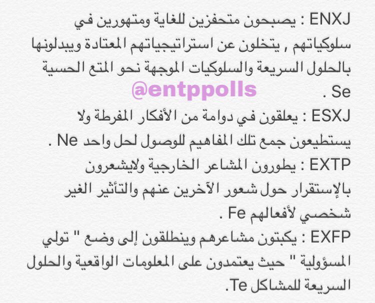 يعتمد على Si و Ti فقط ! وهذة حالة نفسية خطرة جداً وغير صحية لأن وظائفك الأربع الأساسية تحتاج للتغذية اللازمة من الداخل i والخارج e