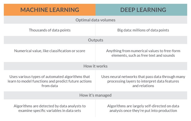 مقال يناقش الفرق بين طريقة تعلم خوارزميات الـ ML ويقارنها بطريقة تعلم خوارزميات الـ DL dataversity.net