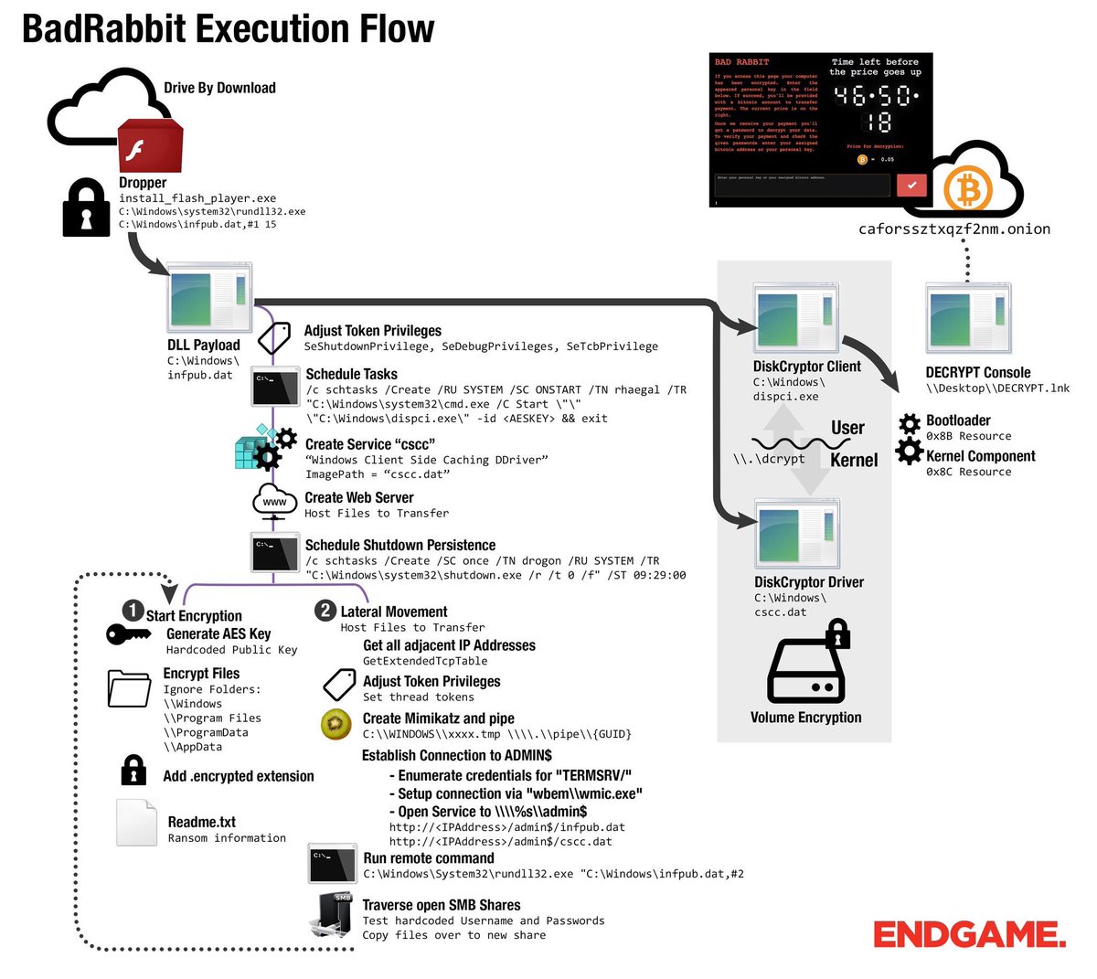 تعرف بصورة واحده من @malwareunicorn كيف يعمل فايروس الفدية الجديد BadRabbit الي أشغل العالم هالايام
