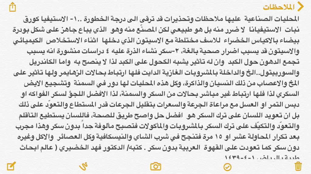 ٣-دراسات عديدة اثبتت أن المحليات الصناعية كالاسبارتيم والسوربيتول وكل المتوفرة بالسوق بأسماء مختلفة لها دور في تجميع الدهون حول الكبد وكذلك لها تأثير على المخ والأعصاب، الحل هو أن تخفف السكريات وستتعود على تركها وتمارس الرياضة وتشبع من الخضار والورقيات والنخالة واكثر من شرب الماء