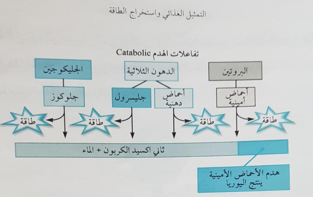 الجسم يستمد الطاقة من الأطعمة المستهلكة يومياً الكربوهيدرات والدهون و البروتين وهي تعرف بعناصر الطاقة وتعتبر مواداً كيميائية تحتفظ بالطاقة بين رولبط الذرات المكونة لها وتتحول عن طريق التمثيل الغذائي وعمليات الأكسدة وتكسير الغذاء إلى ثاني أكسيد كربون وماء .