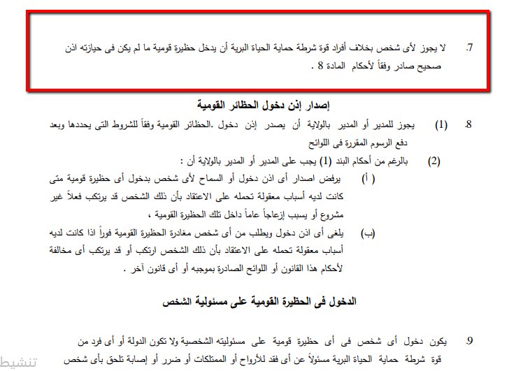 بالنسبة للمحمية ممنوع انك تدخلا اصلا وفي نص القانون انو غير قانوني ولو دخلت حيكون على مسؤوليتك الخاصة وممنوع انك تستفز حيوان بري انو يهاجمك عشان تقتلو ولو هاجمك تحاول انو يكون قتل الحيوان المحمي اخر خيار وبرضو يتم محاسبتك قانونيا لانك اصلا دخلت وبعدين لانك قتلت حيوان محمي