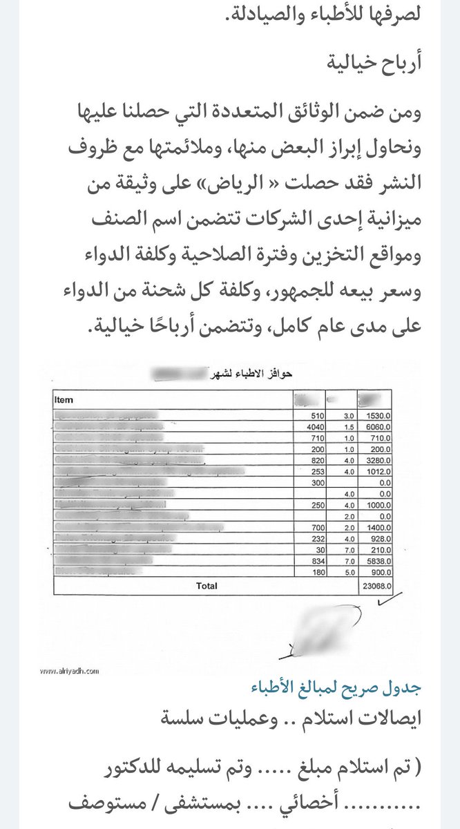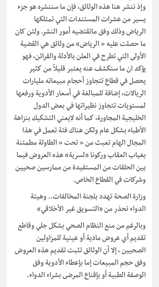 نشرت #الرياض بالوثائق فساد #مافيا_الادوية بين الشركات والصيدليات والمستشفيات والأطباء والصيادلة؟!