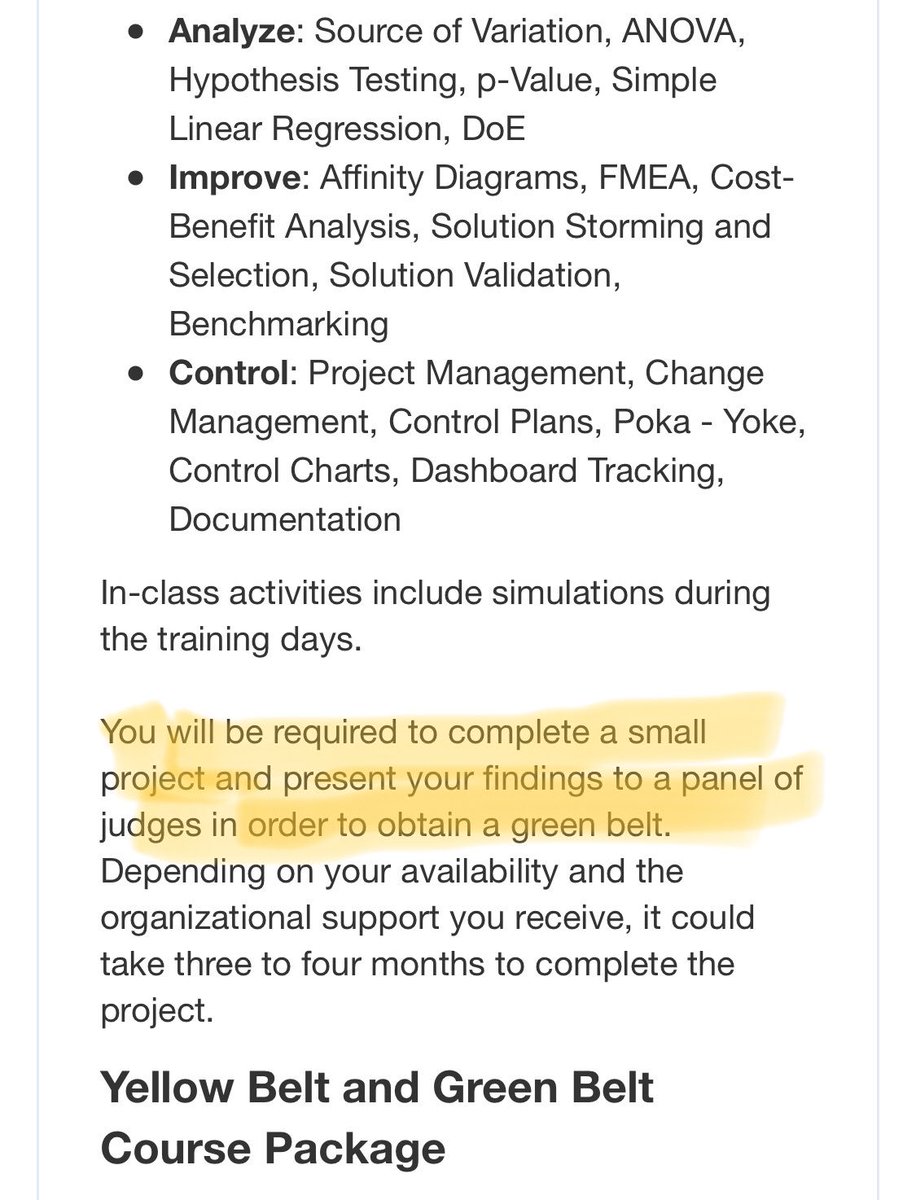 وبالأخص مدى قدرة الحاصل على مؤهل الحزامين الأخضر والأسود على تطبيق ممارسات #لين٦سيقما على مشاريع فعلية.
